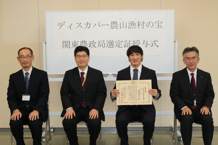 関東農政局「ディスカバー農山漁村(むら)の宝」の選定証授与式を賀茂農林事務所で行い、高橋鉄兵さんに選定証を授与した後、意見交換を行いました。