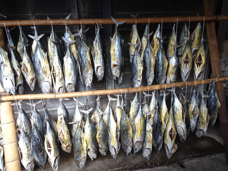 しおかつおは、高濃度の塩に漬け込み、乾燥させて作られる保存食で、製造に約1ヶ月を要します。