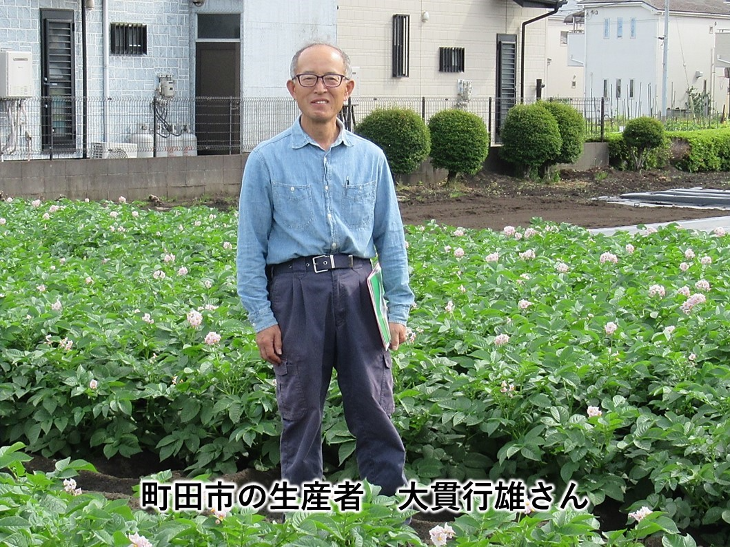 大貫さんは町田市の認定農業者として、自宅に隣接する約60aの畑地で、ネギやジャガイモなど約30品目を栽培しており、主にJAの直売所や学校給食へ販売を行っています。