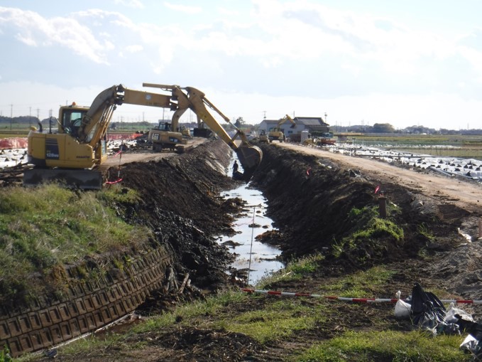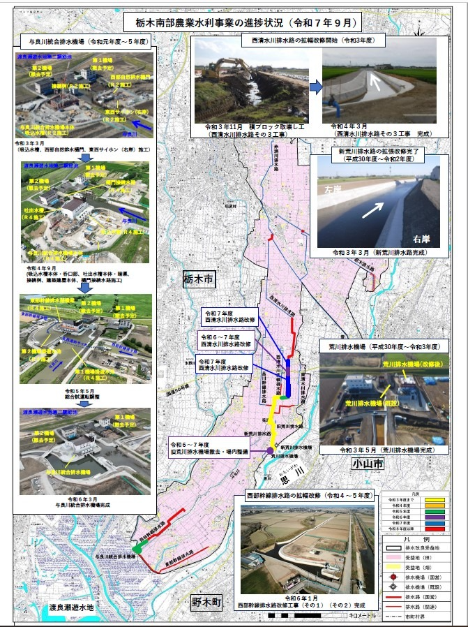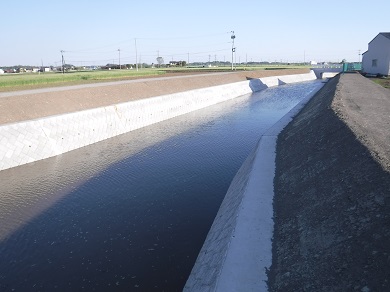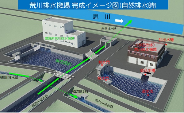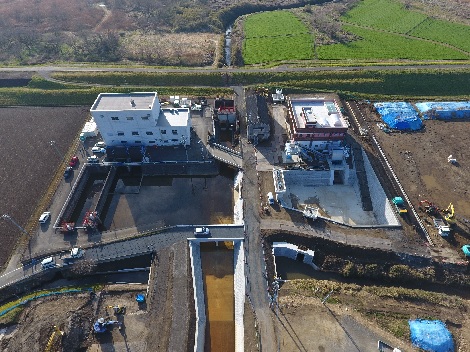 | 〈新荒川排水路の役割〉 新荒川排水路周辺農地や西清水川排水路から流れてきた水を思川へと排水します。 |