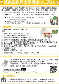 近畿農政局では、次世代を担う学生たちに、食料の現状や、農業・農村に係る幅広い知見や知識を有してもらうことにより、将来、地域を活性化する人材となってもらうことを目的として、出張講座を実施しています。