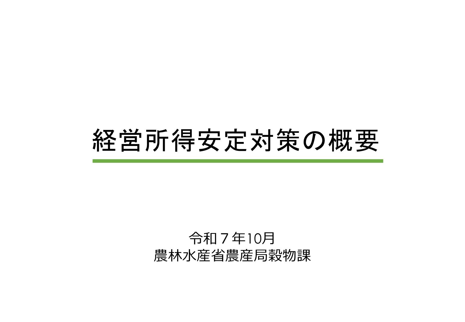 - 経営所得安定対策の概要(令和7年10月版資料等)