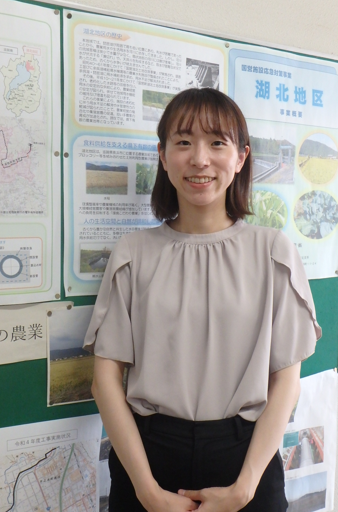 大学で農業土木分野を学んだことをきっかけに農業土木職の存在を知り、一見、派手な職種ではないですが、私たちが生きていくうえで必要不可欠な食を生み出す農業の基盤を支えるという、縁の下の力持ちのような姿に魅力を感じ、生まれ育った近畿地方の農業を支えたいという思いから近畿農政局を志望しました。