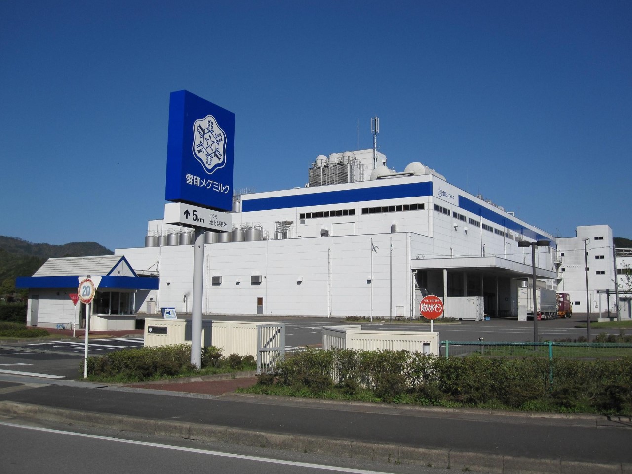 池上製造所は四方を山に囲まれた緑豊かな地域にあります。斜め向かいには牧場があり、この牧場の牛から搾乳した乳も池上製造所へ運ばれてきます。