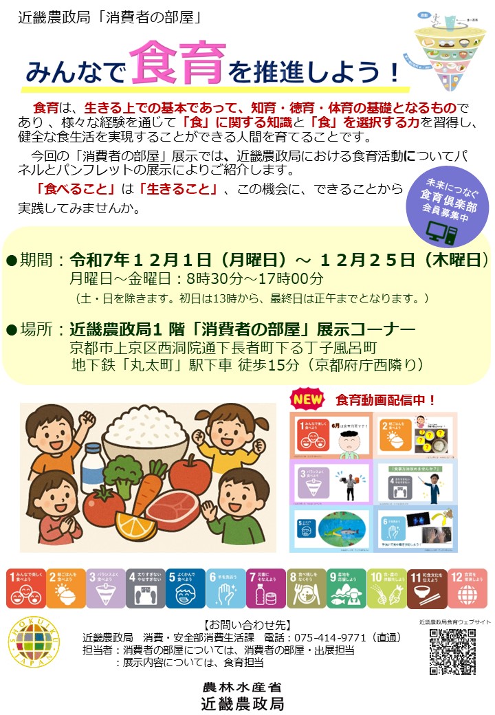 場 所:近畿農政局 1階「消費者の部屋」展示コーナー