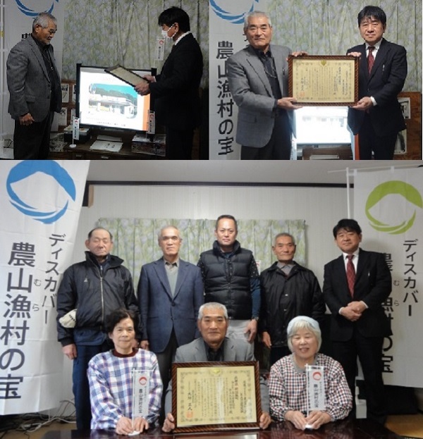 近畿農政局兵庫県拠点は、12月21日(火曜日)、新温泉町『海上(うみがみ)地区』を訪問し、近畿「ディスカバー農山漁村(むら)の宝」(第5回)の選定証授与式を開催しました。