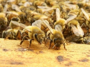 巣箱に集まるミツバチ