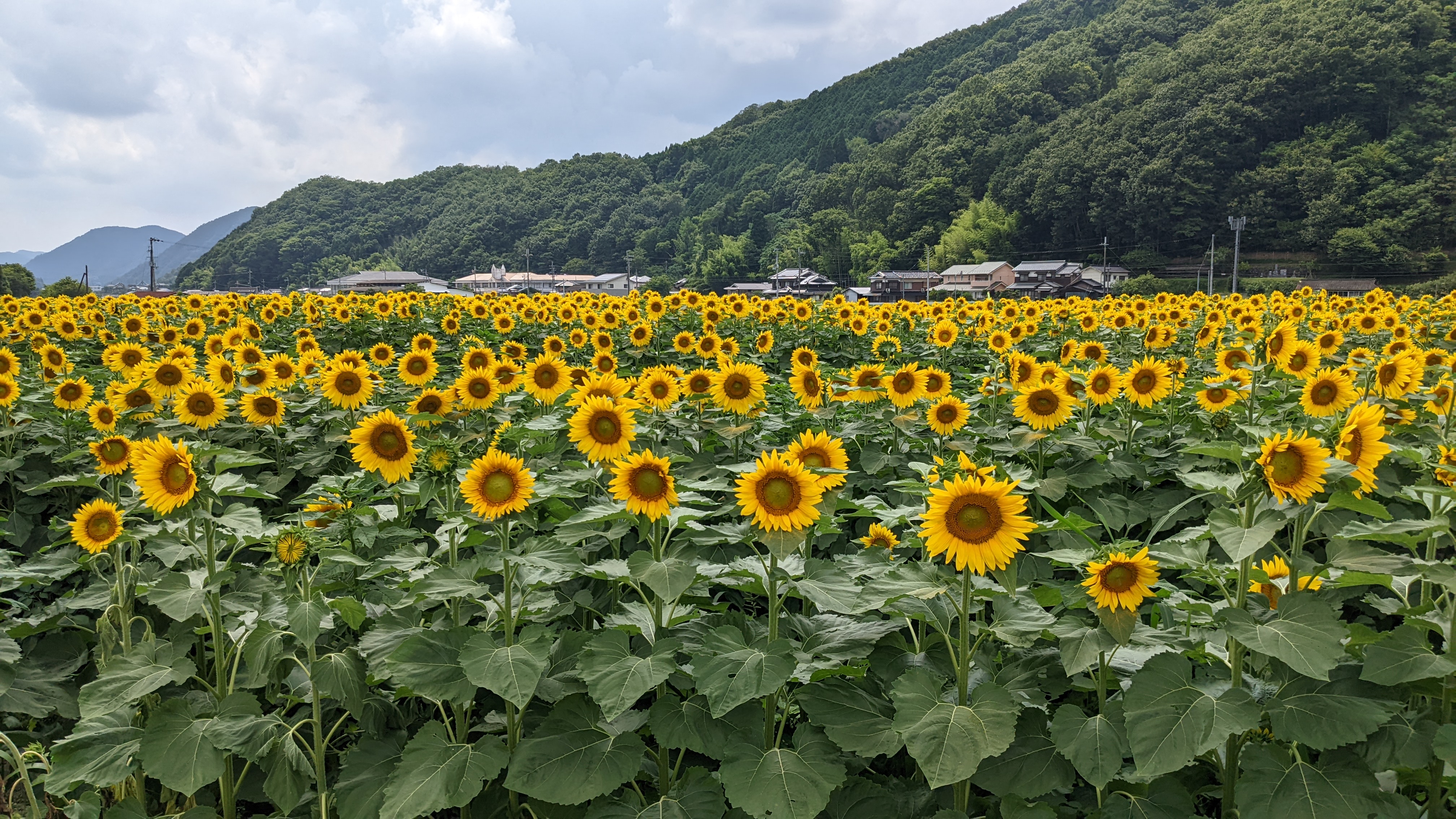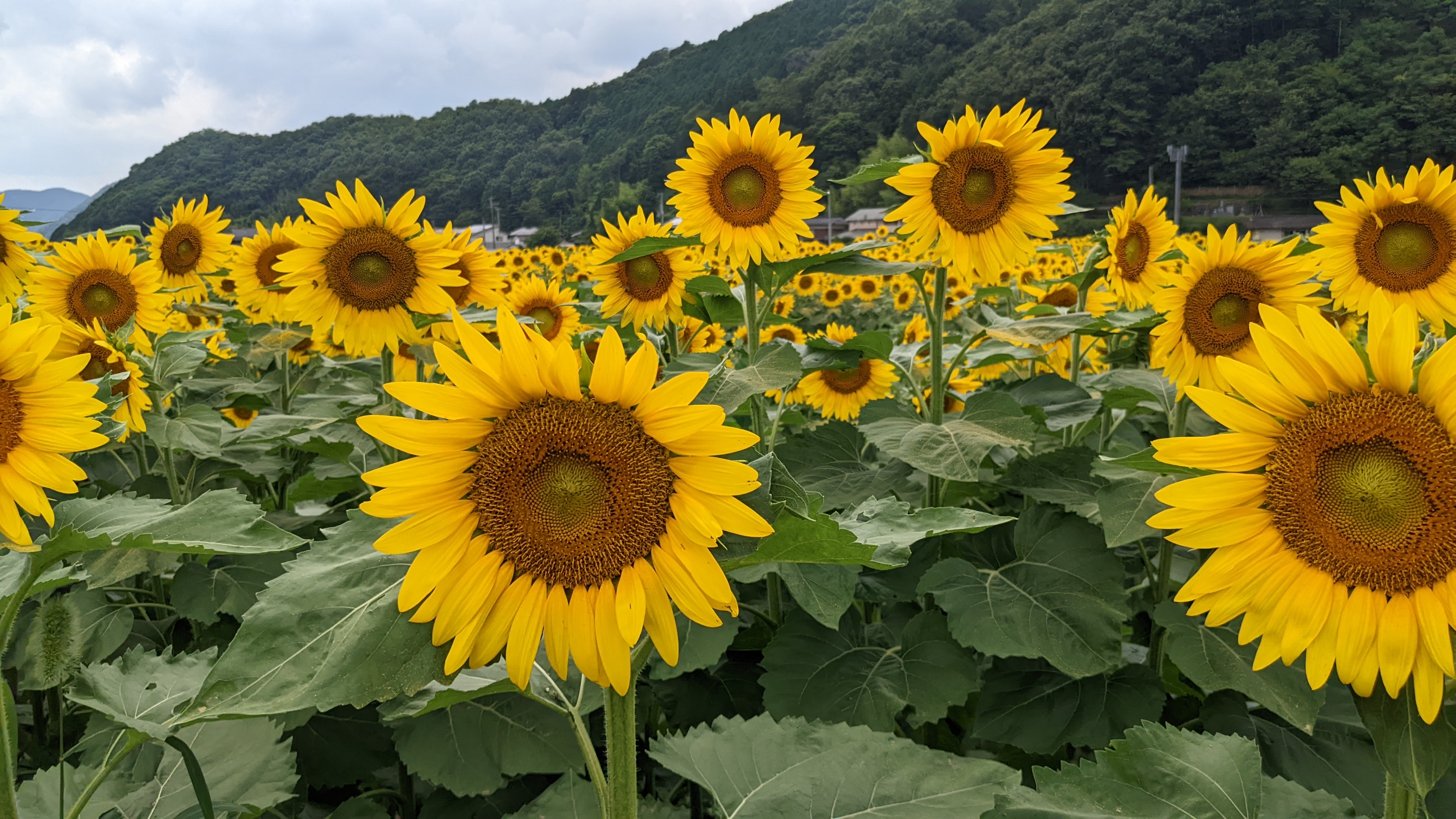 佐用町のひまわりは、7月中旬から順次見ごろを迎え、見ごろがおよそ1週間です。