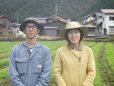 平成28年に結婚と同時に就農し養父市大屋町にIターン、有機JAS認定を取得し、有機野菜を中心に栽培している狭間健治さん・瞳さんご夫妻にお話を伺いました。