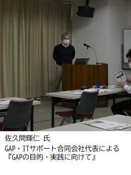 当日は、「GAPの目的・実践に向けて」の基調講演と「販売・卸の立場としてのGAP推進活動」の事例が紹介されました。