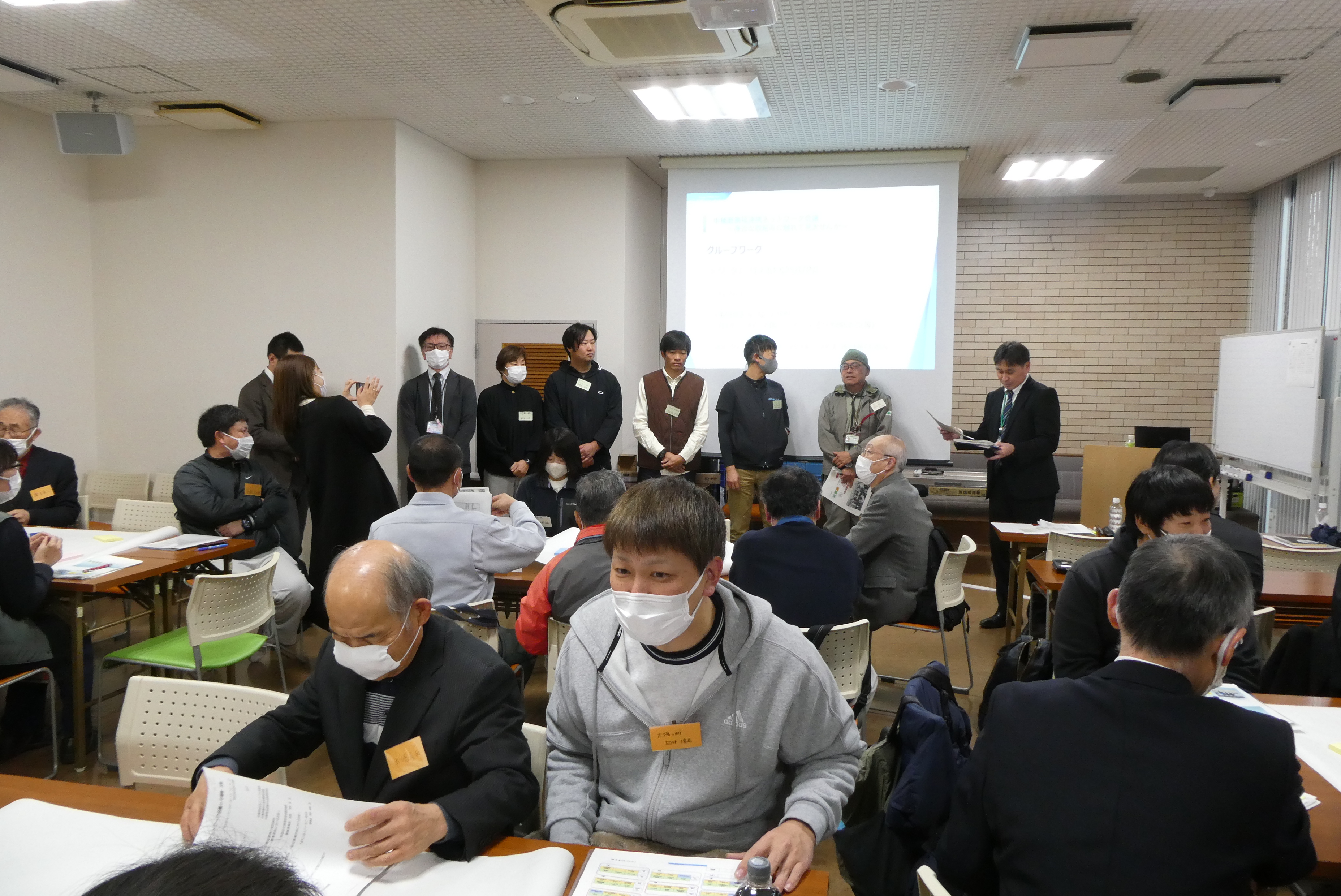 その後行われたグループワークでは、障害福祉事業所、農業者、県・市町の担当者が7つのグループ