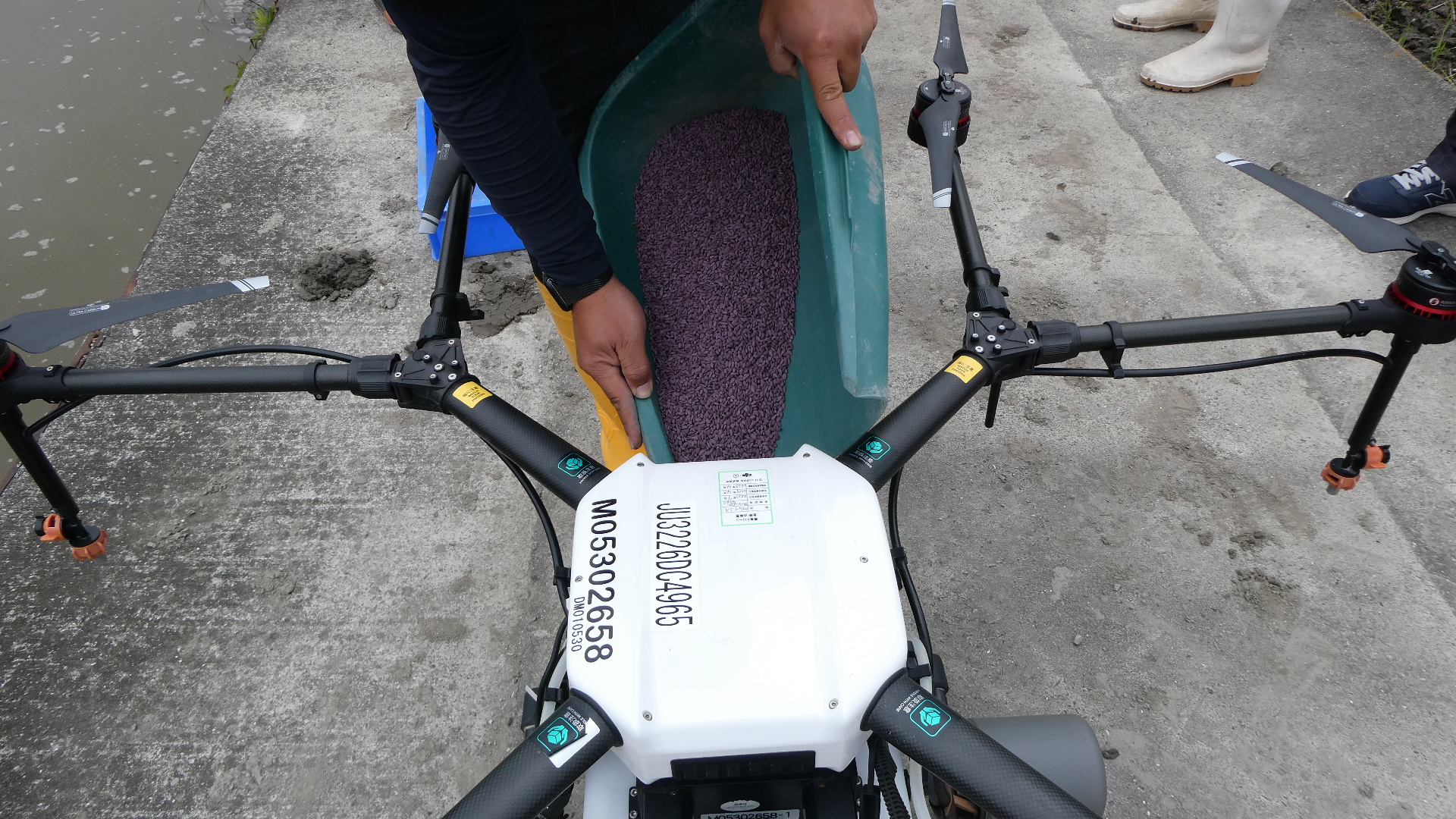 ドローンは高度2メートル、時速15km程度で飛行し、散布幅約4メートルで播種され、1筆当たり3~4分とわずかな時間で終了しました。