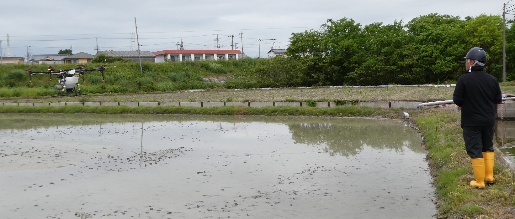 ドローンによる水稲の直播作業が行われました
