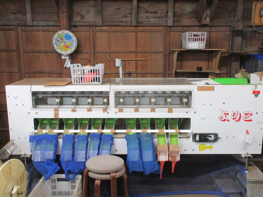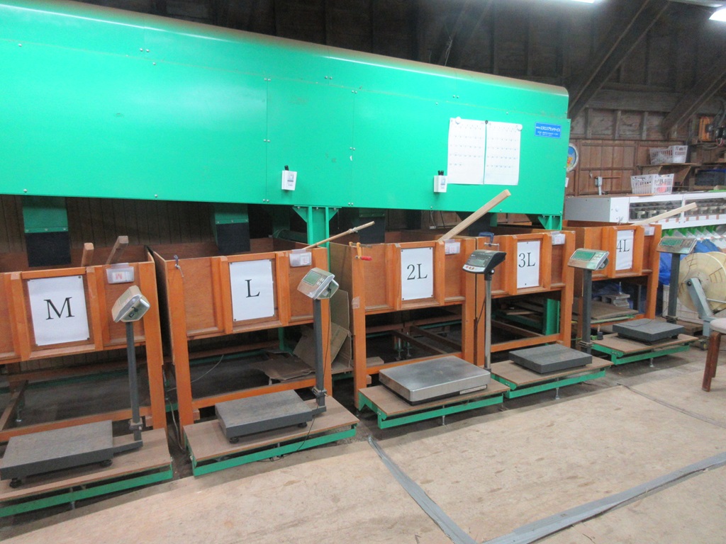 低木栽培することで非常に粒が大きな栗が実るため、選果や選別が既製の機械では対応できず、特別注文品か既製品を改良して使用しているとのことです。