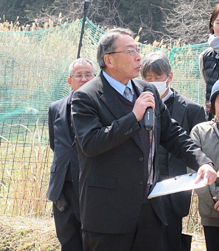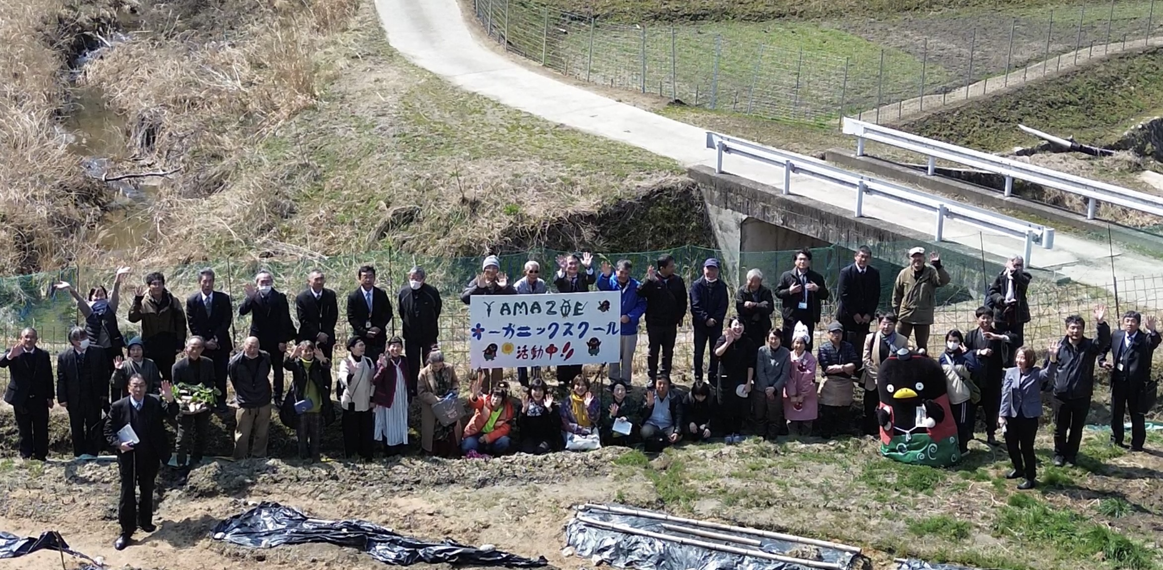 令和7年3月21日(金曜日)、山添村オーガニックスクールほ場において、若い世代、地域住民、村に関心のある人などが山添村の地でつながり、村内の農地を活用した営農を実践することによる持続可能な山添村の農業の確立に向け、野村村長が、奈良県内で3例目となる「オーガニックビレッジ(※注)」を高らかに宣言しました。