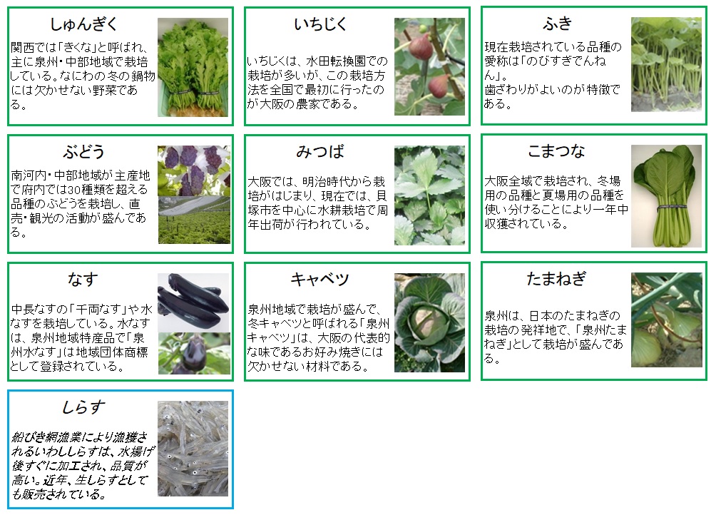 大阪府の特徴・取組、主な農林水産物、産地、農林水産業に関する統計データ等をとりまとめました。