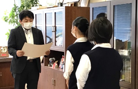 「第71回日本農業クラブ全国大会」の中止を受け、令和2年9月10日、八日市南高等学校に農林水産大臣からの激励状を伝達しました。