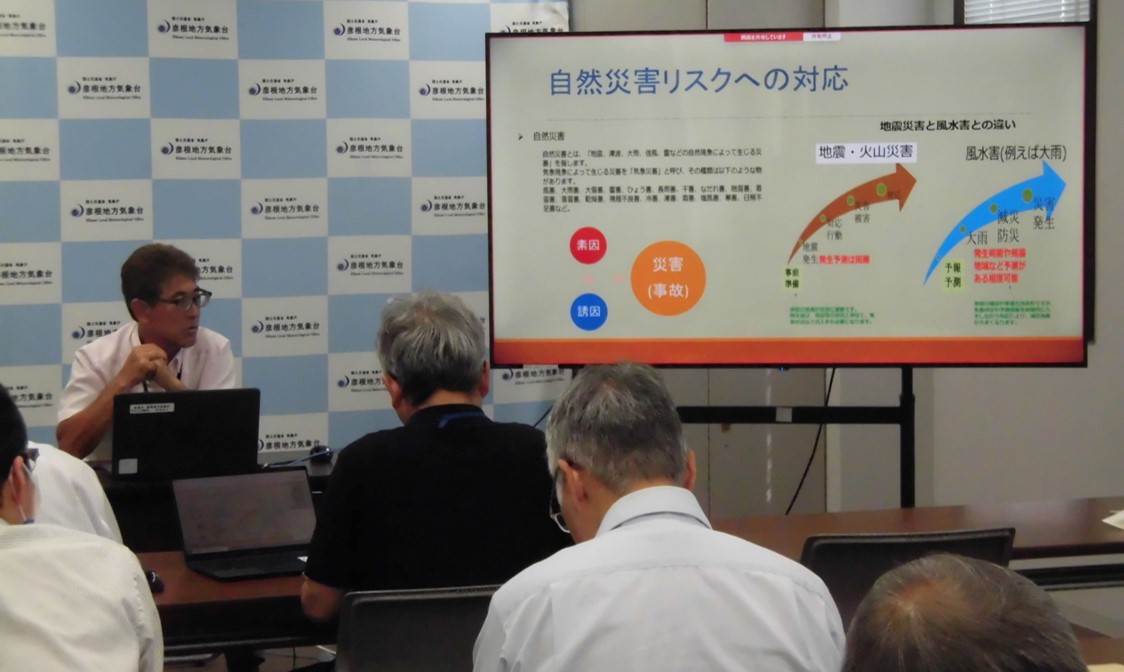 彦根地方気象台に赴き、小野善史リスクコミュニケーション推進官から「自然災害リスクへ対応するために」というテーマの講義を受講しました。