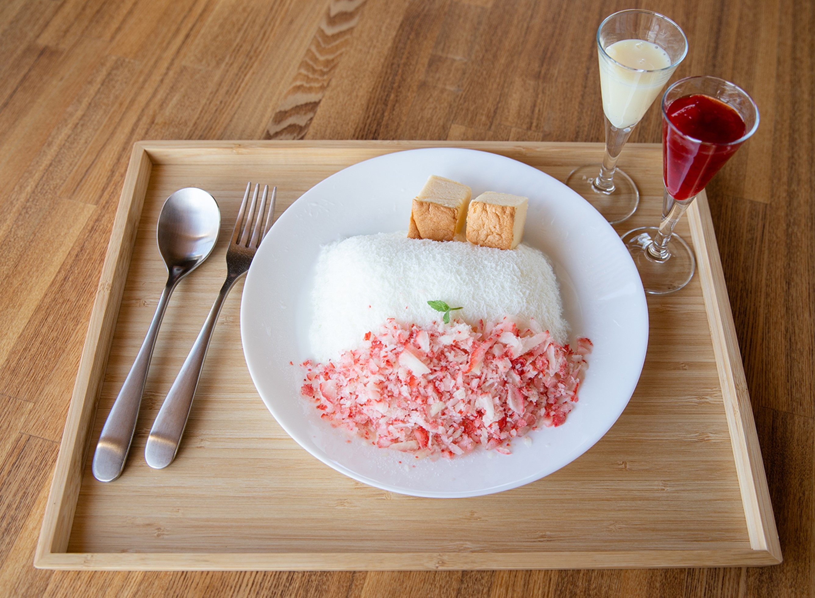 ![]() カフェで提供される韓国かき氷「糸ピンス」(七夕いちご園提供写真) |
