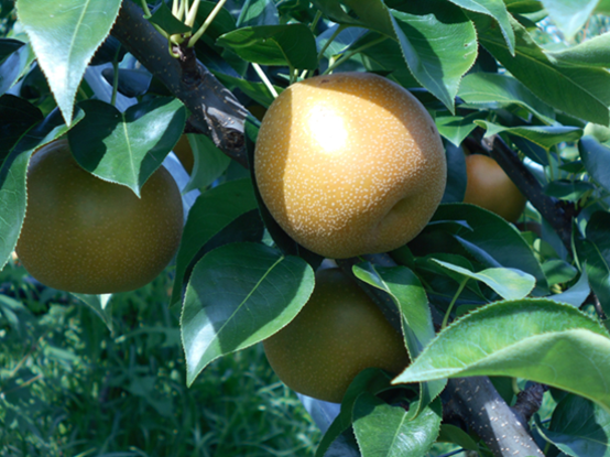 果樹産地を目指して! 今年からなしの収穫が始まります。販売先は、JAへの出荷とJA系列店において直売をされる予定です。 今後はV字型樹形栽培のメリットを活かして、ロボット草刈機やロボット防除機、収穫ロボットなどを導入したスマート農業を検討されています。 水原さんは、令和4年から近江八幡市に整備された果樹団地で、なしとぶどうを栽培する20代から30代の若手8人から構成される生産組合のメンバーでもあり、近江八幡市が果樹の産地になることを目指し、活躍されています。 |