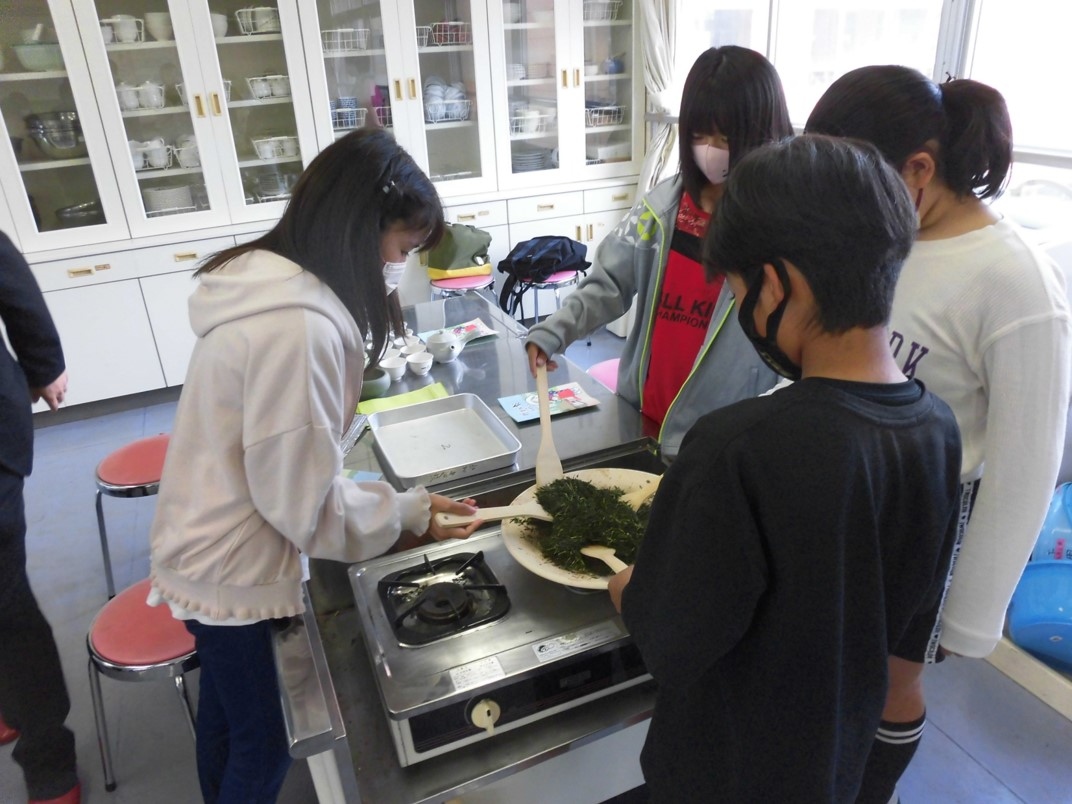 説明の後、児童は煎茶の茶葉を焙じ、自分たちでほうじ茶を作り、味・色・香りの違いを比べる体験を行いました。