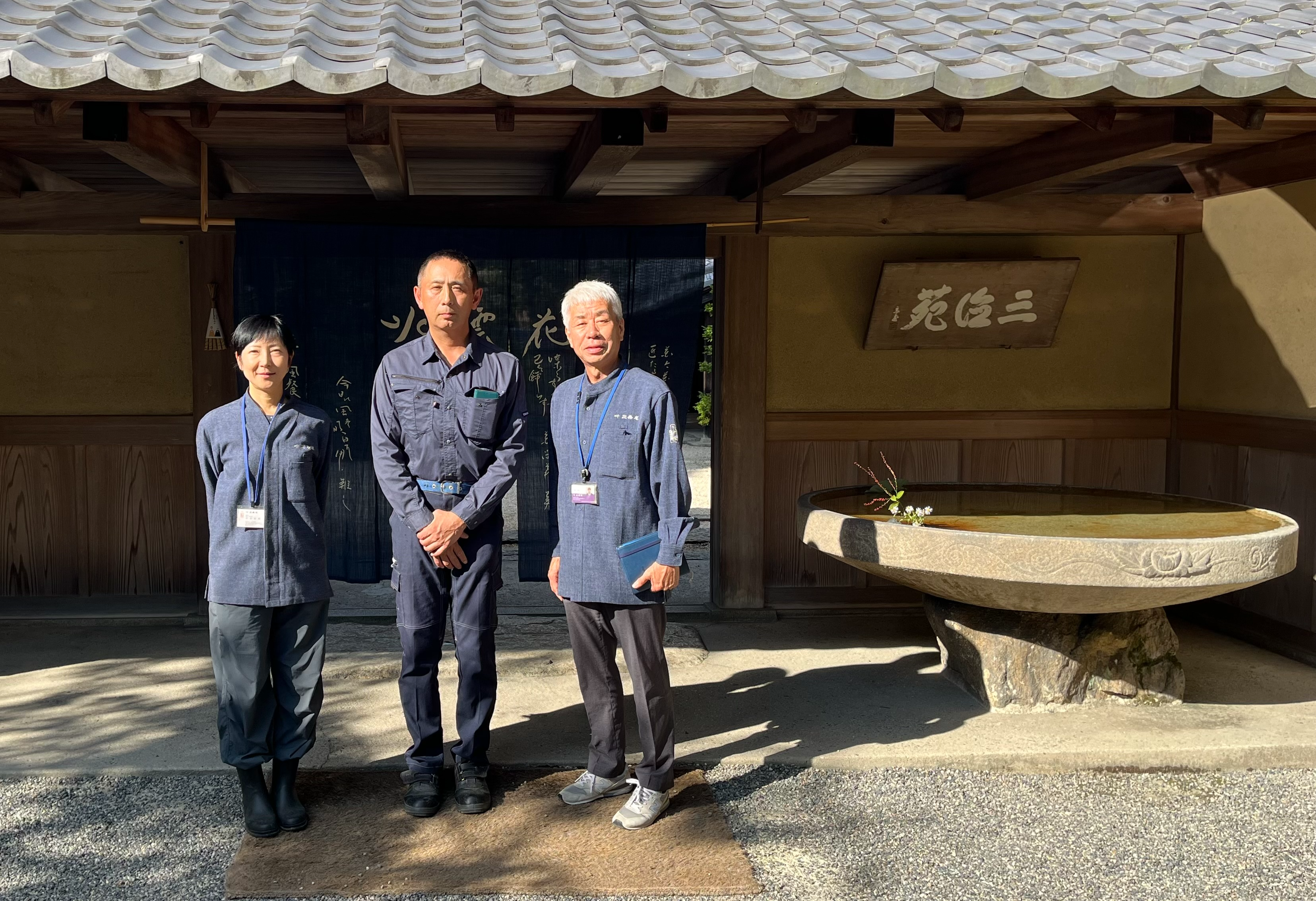 滋賀県大津市に本社を構える和菓子屋 株式会社 叶 匠寿庵 (かのうしょうじゅあん) (以下「叶 匠壽庵」という。) は、和菓子づくりは素材づくりという思いから、「農工ひとつ」を掲げ、昭和60年、大津市大石龍門の自然豊かな丘陵地63,000坪を開墾し、農園を持つ本社工場「寿長生の郷 (すないのさと) 」を開業しました。この地で農作物を栽培しているのは、叶 匠壽庵グループの有限会社 芝田果径 (以下「芝田果径」という。) です。原材料を自ら栽培することで素材にこだわり、和菓子が作られています。 芝田果径を訪問し、企業と農業の関わりについて、お話ししていただきました。