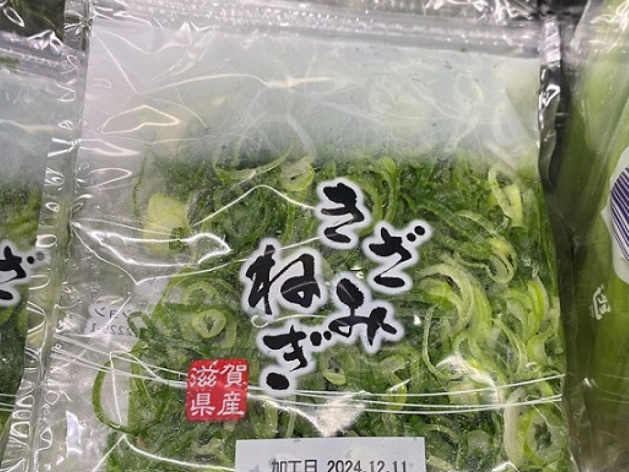 (株)アグリケーションでは、プラスチックの削減に取り組むため、カットねぎをピロー包装で販売しています。