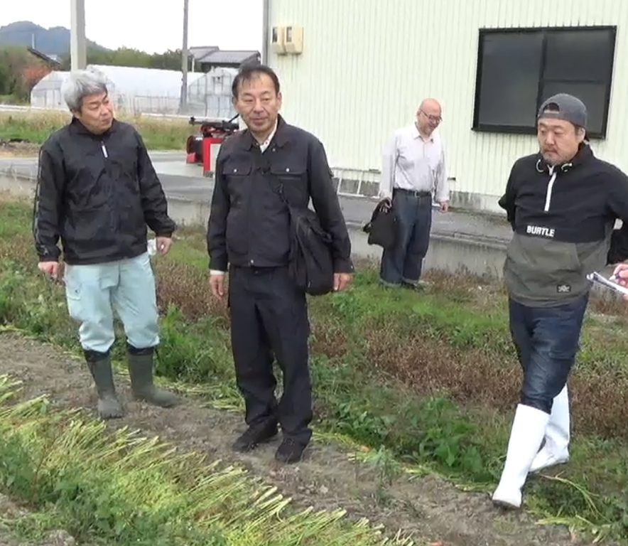 ![]() 前列、左からJA東びわこの藤野さん、村山地方参事官、株式会社G-FARM代表の横森さん。 |