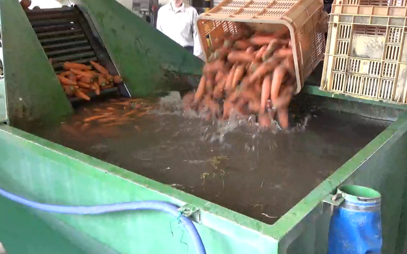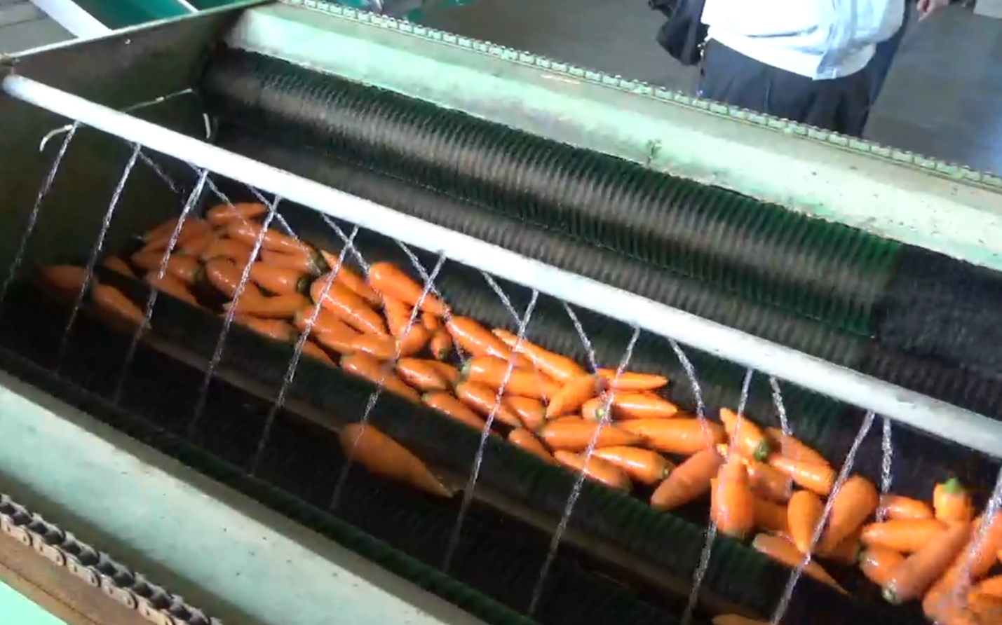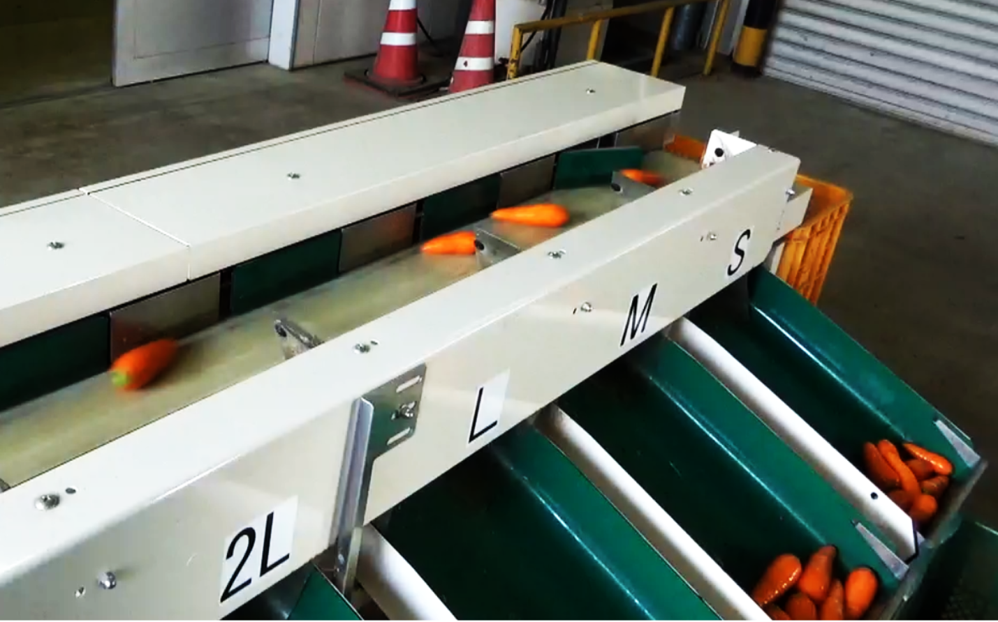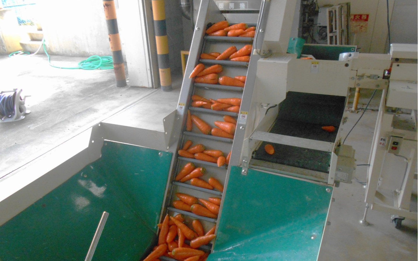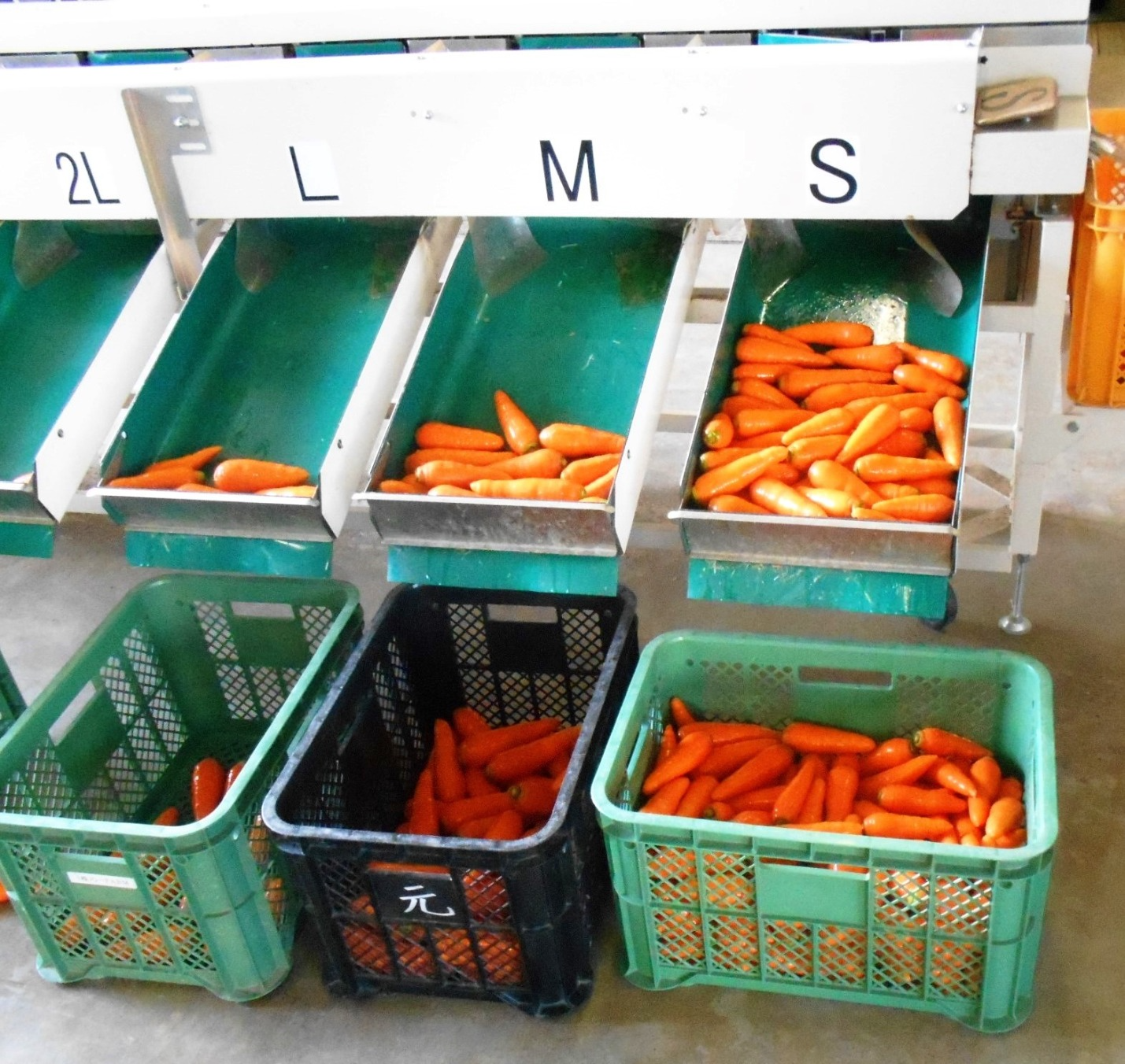 収穫したにんじんは、JA東びわこの施設へ運ばれ、洗浄と選別が機械で行われます。