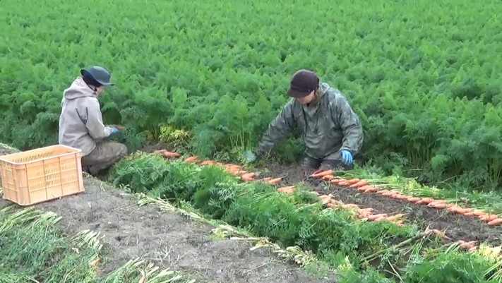 株式会社G-FARMの取組について 代表取締役の横森元一氏 当社では、にんじんを80a作付けしており、作業時期分散のため4品種(恋むすめ、冬ちあき、クリスティーヌ、オランジェ)を栽培しています。 6次産業化にも取り組んでおり、にんじんジュースやにんじんドレッシングなどを製造・販売しています。今後も新商品を開発していきたいです。 |