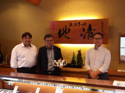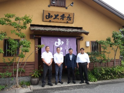 湖南市下田で昔ながらの製法により、近江の伝統野菜の漬物を製造・販売している株式会社やまじょうを訪問し、上西宗市代表取締役会長、上西宗太代表取締役社長と意見交換を行いました。