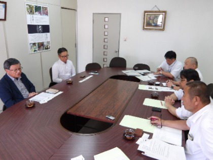漆畑地方参事官(左)、上西宗市代表取締役会長(中)、 意見交換の様子