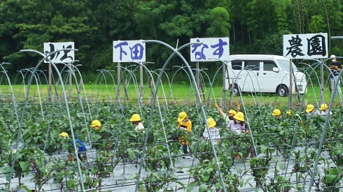 地元の小学生にも伝統野菜「下田なす」を身近に感じてもらえるように、定期的に収穫体験を実施しているとのことです。