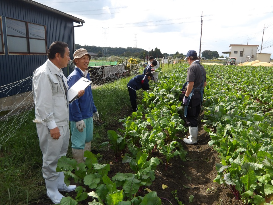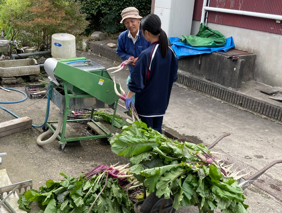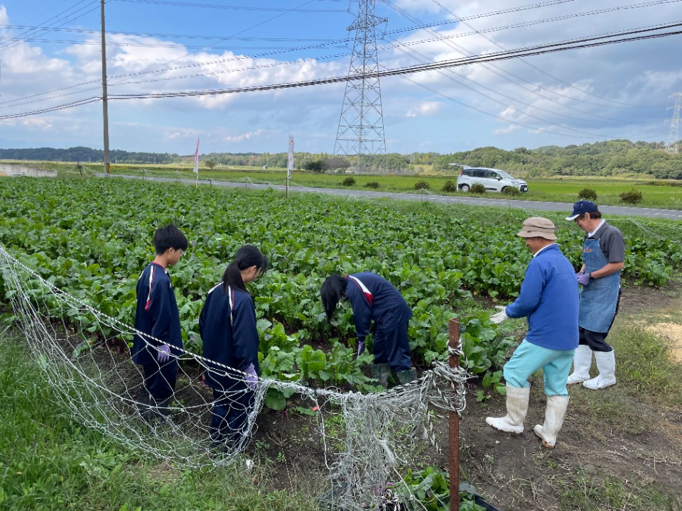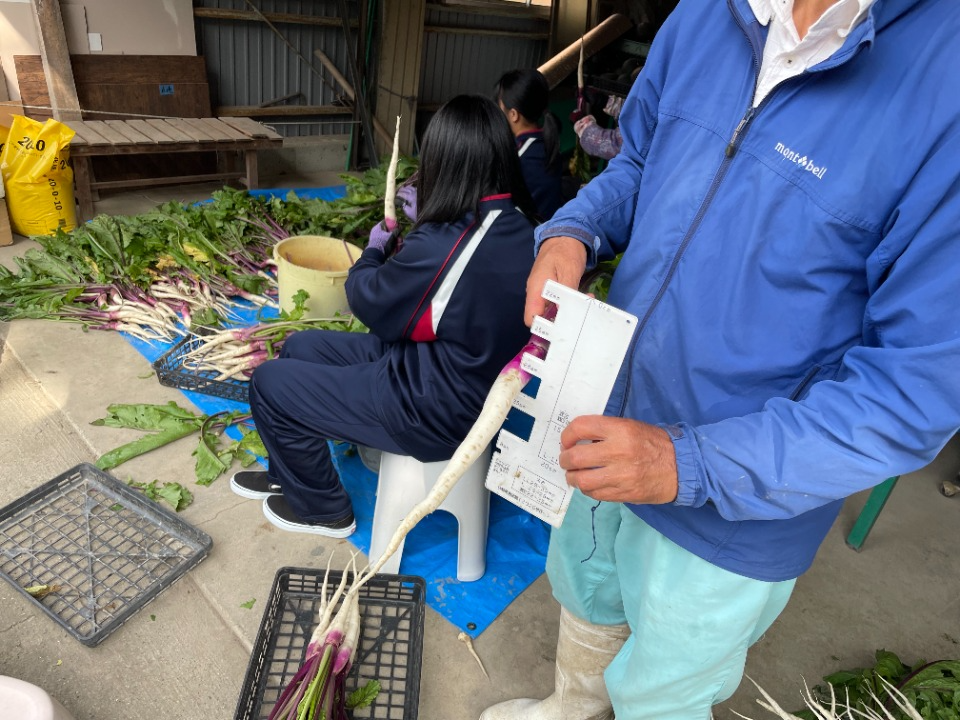 取材当日は地元の中学生が職業体験に訪れ、日野菜の収穫作業に汗を流していました。