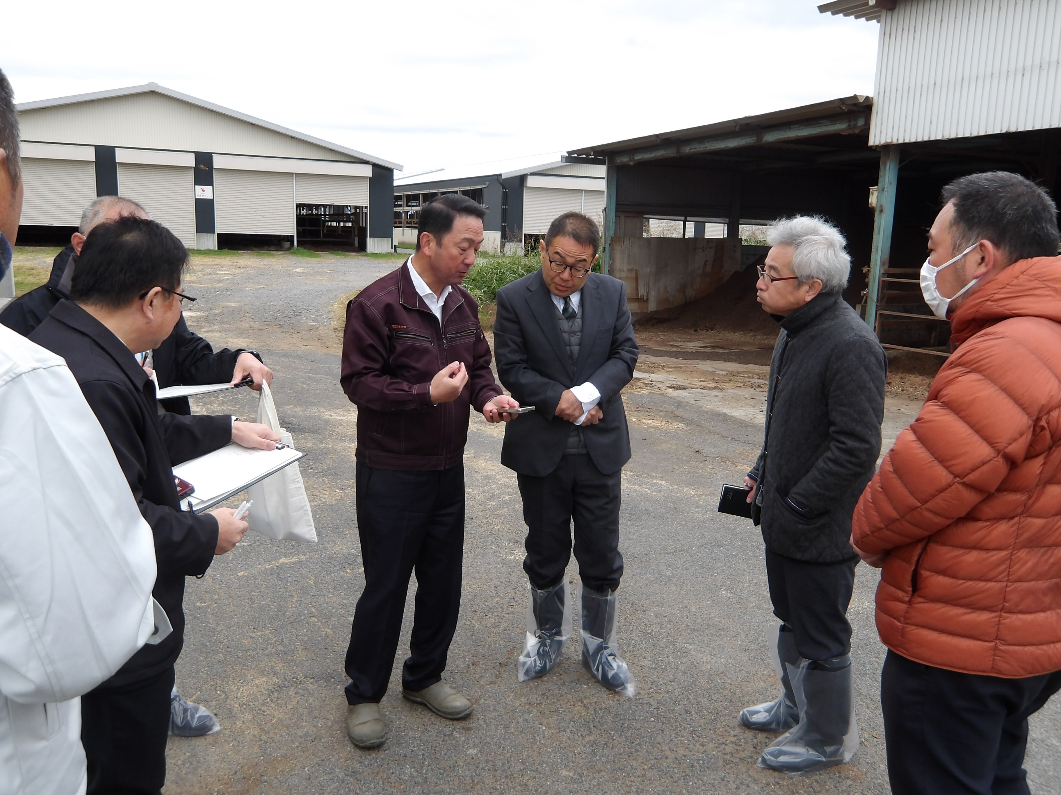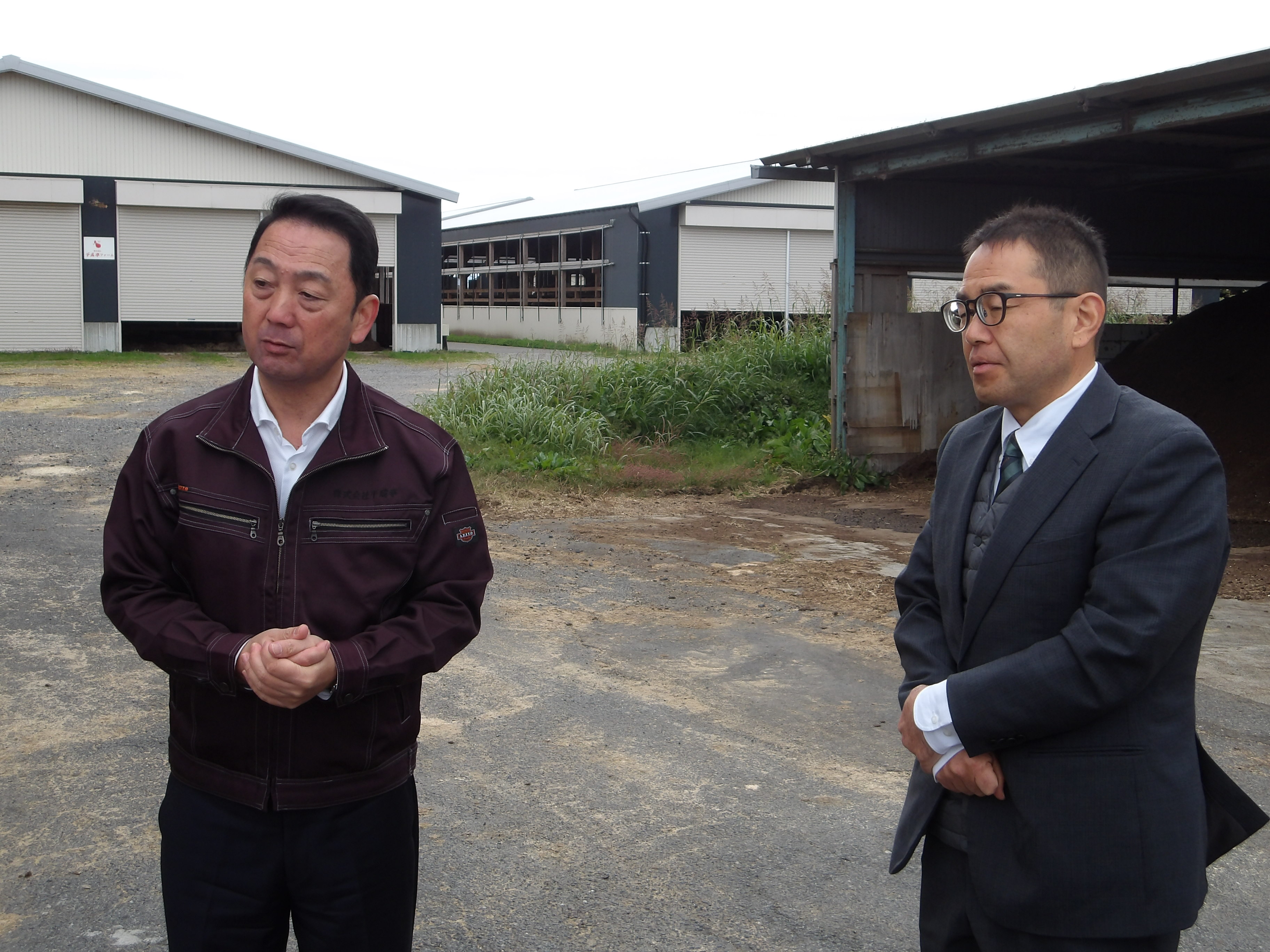 令和7年11月、近江八幡市で近江牛の肥育に取組んでいる株式会社千成亭ファーム(以下「千成亭ファーム」という。)を訪問し、牧場視察と意見交換を行いました。