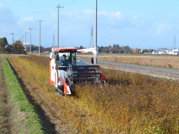 汎用コンバインを使用し収穫