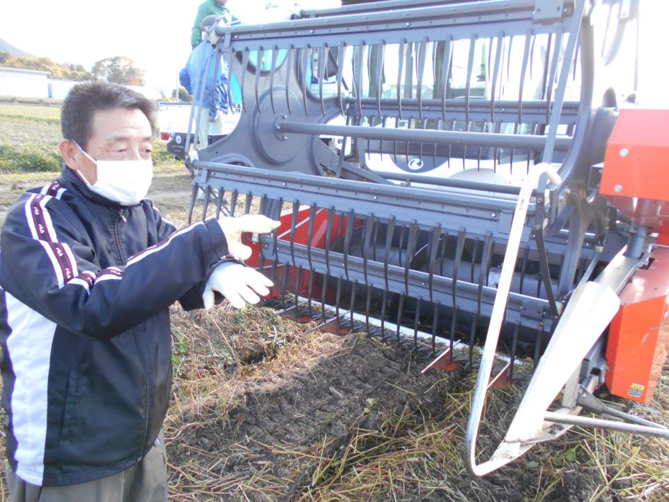 収穫作業の説明をされる土田代表理事