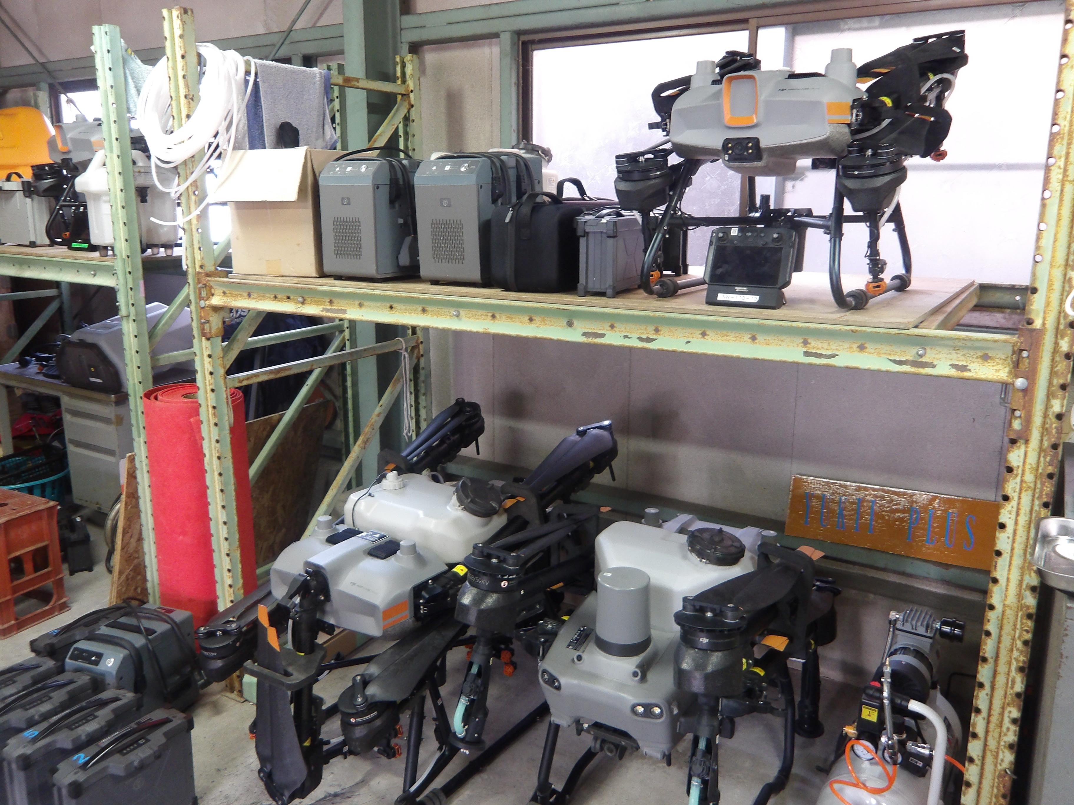 管理倉庫に保管されているドローン