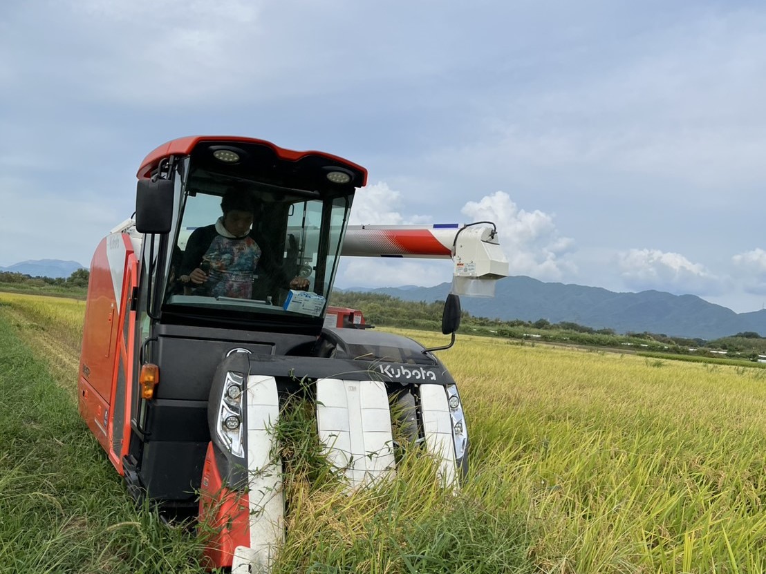 コンバインでの稲刈りの様子