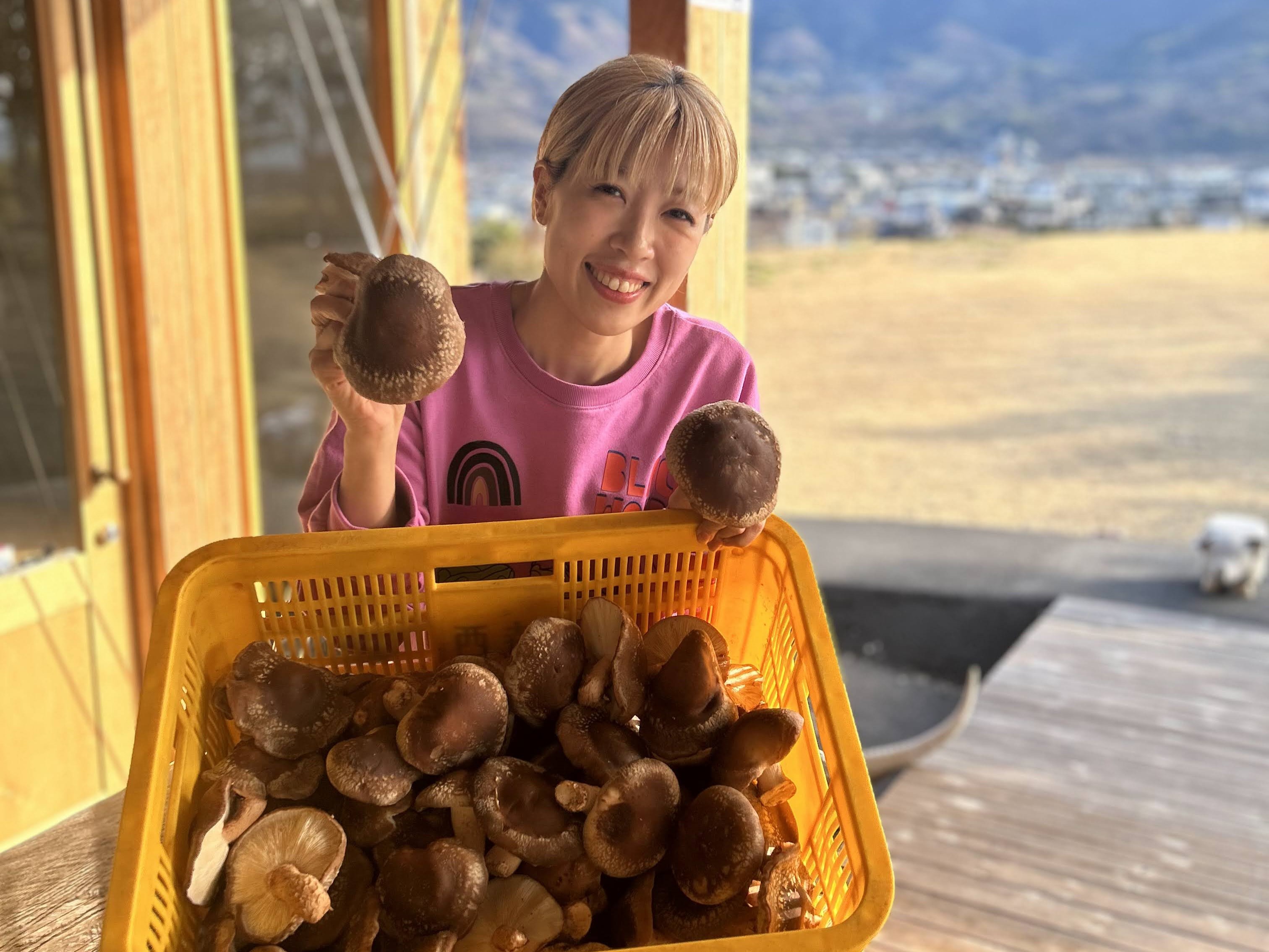 収穫した原木シイタケ