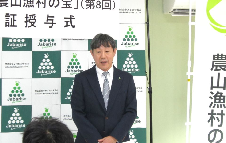 令和6年12月24日(火曜日)、株式会社じゃばらいず北山本社(北山村七色)において選定証授与式を開催し、株式会社じゃばらいず北山に対して、近畿農政局和歌山県拠点中根地方参事官から選定証の授与を行いました。