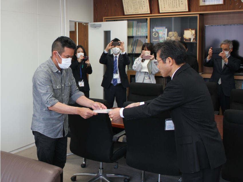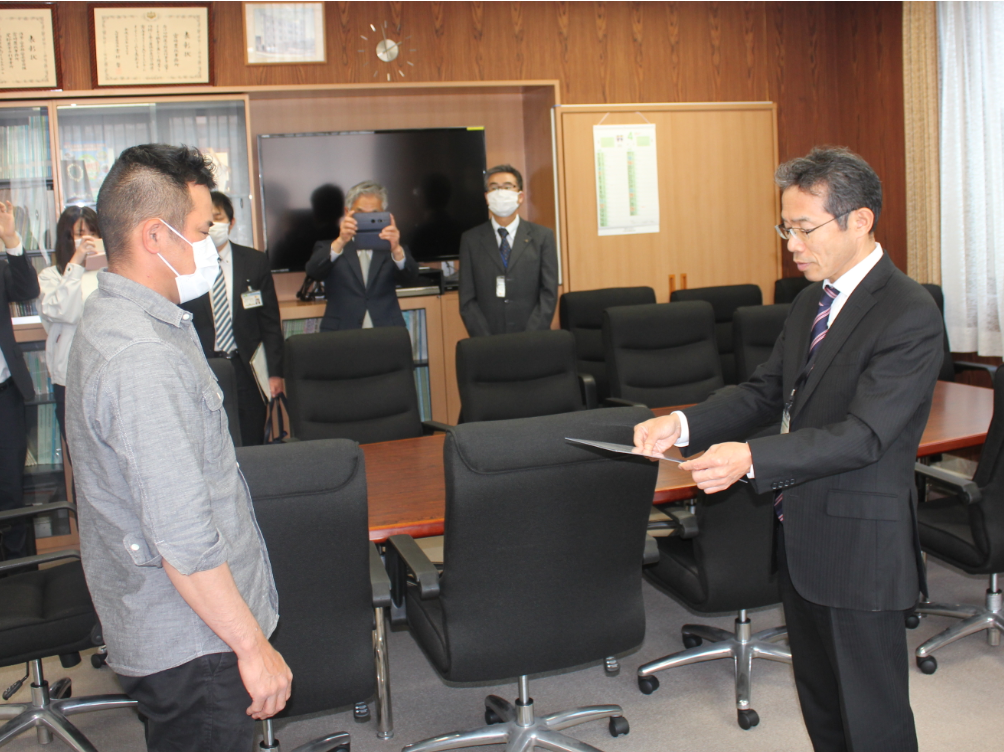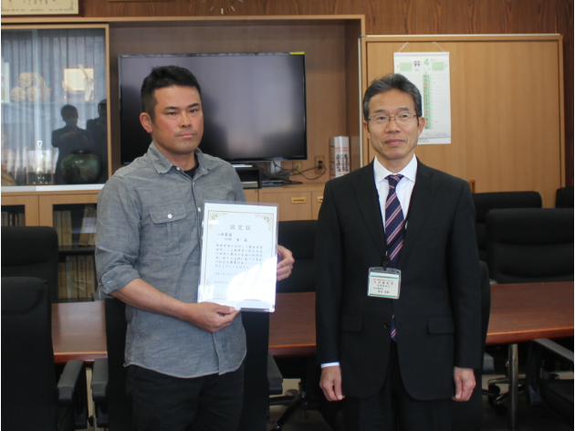 六次産業化・地産地消法に基づく総合化事業計画認定証の手交(令和2年4月10日)