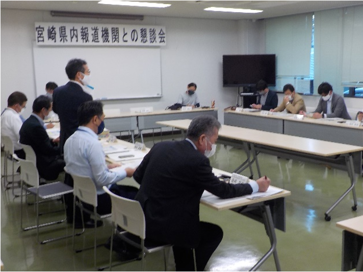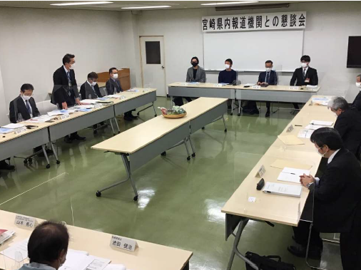 県内報道機関7社と定期的に開催している懇談会を行いました。宮崎県拠点から、令和3年度予算概算要求の概要説明、県内における農業の特徴的な取組事例、若手農業者の紹介等を行った後、質疑を含めて活発な意見が交わされました。