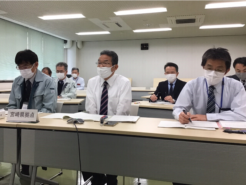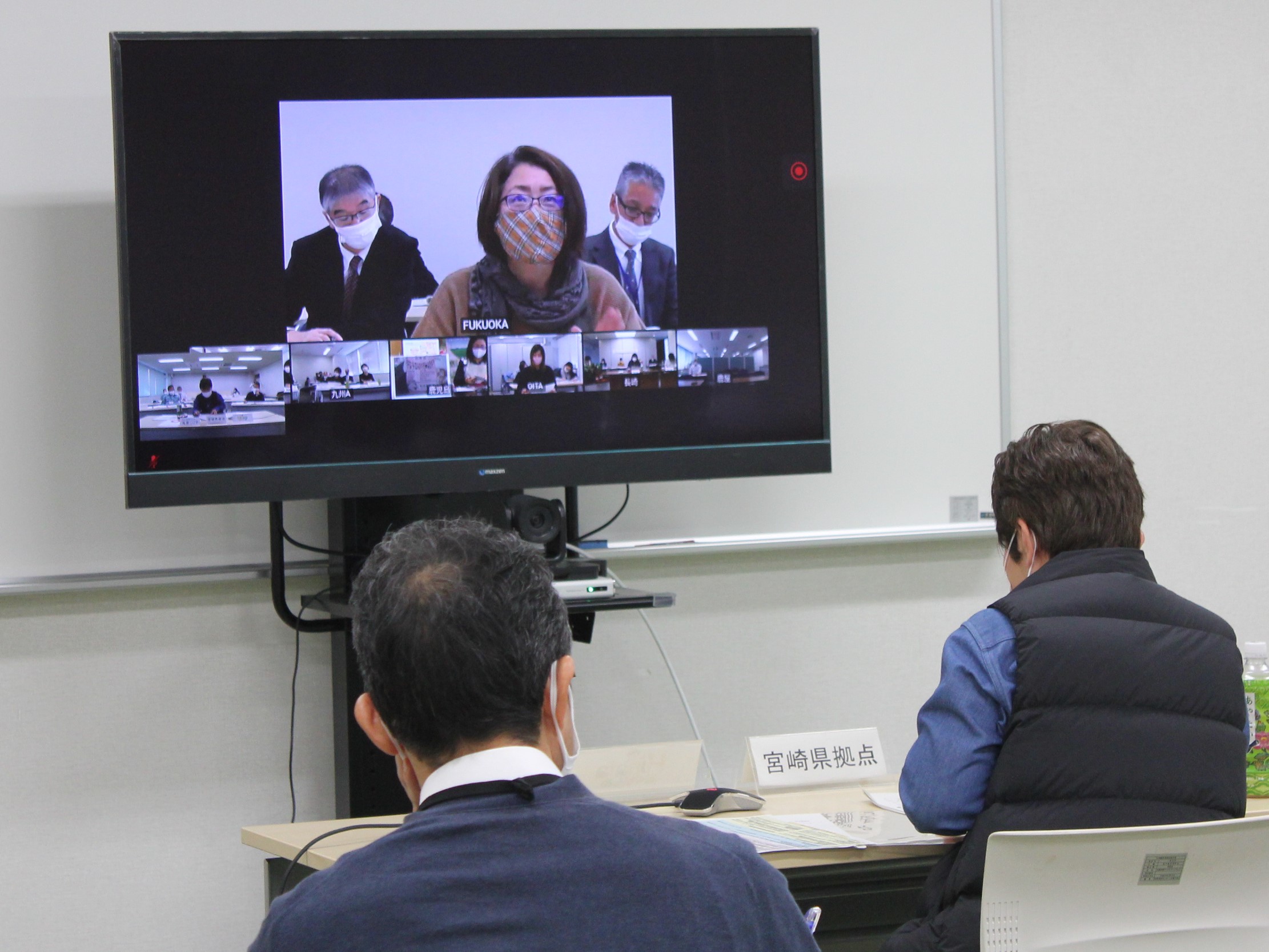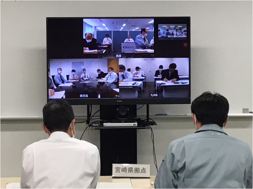 今回で5回目となる九州農政局の鹿児島県拠点、鹿屋駐在所及び宮崎県拠点による連絡会議をTV会議システムにより開催しました。当日は、九州農政局本局とも結び、両県における鳥インフルエンザ発生時の対応や輸出促進に向けた活動状況等について情報共有を図りました。