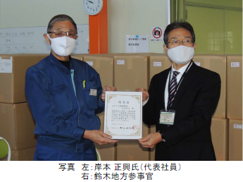 六次産業化・地産地消法に基づく総合化事業計画認定証の手交(令和2年12月17日)