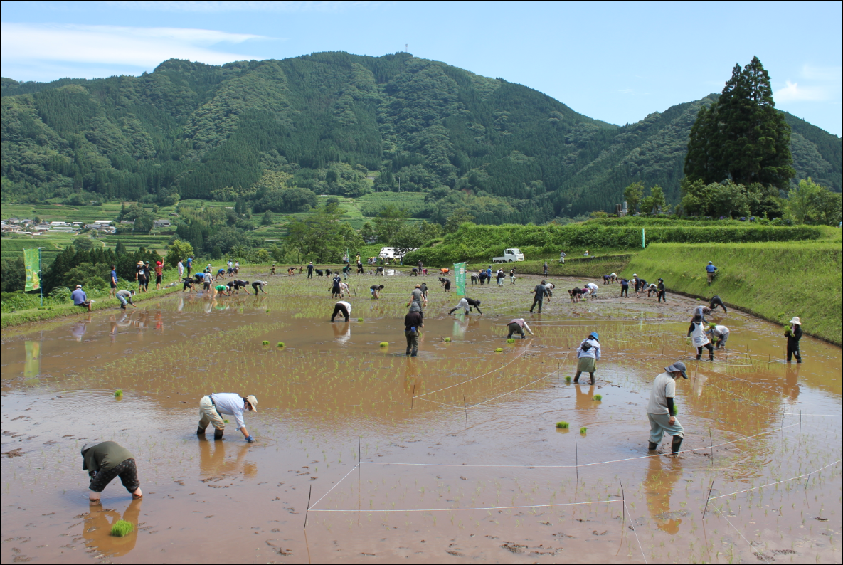 高千穂町中川登集落のアート米田植えに参加(令和3年6月19日)