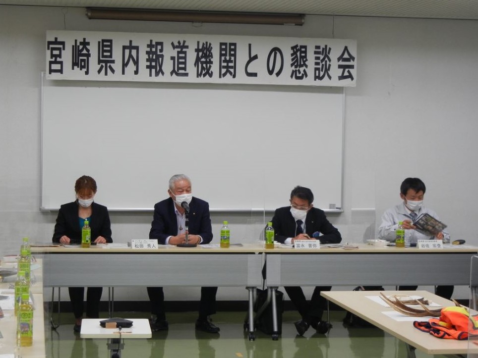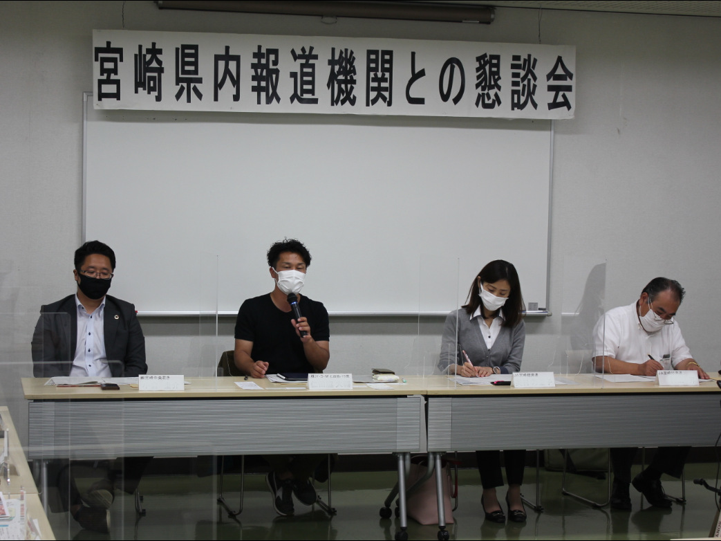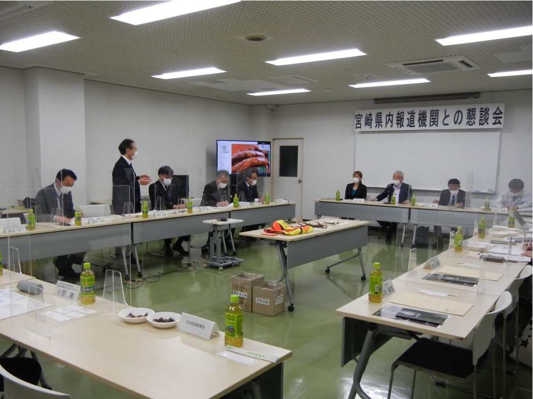 令和3年度第1回目の県内報道機関との懇談会を開催しました。宮崎県拠点から、県内における農業の特徴的な取組事例として、棚田の取り組みや水田でのキャベツ栽培、農業者の紹介等を行った後、質疑を含めて意見が交わされました。