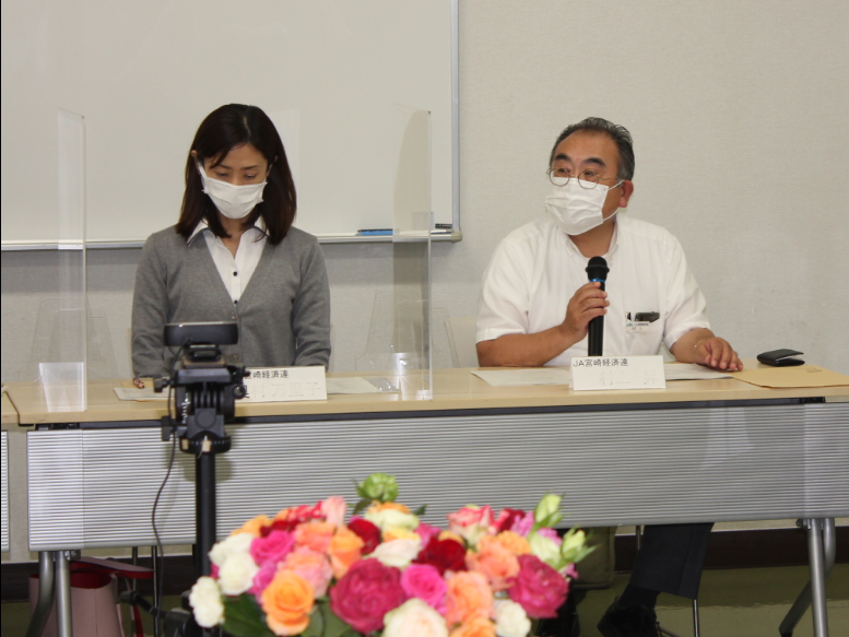 続いて、コロナ禍における花きの生産から販売に至るまでの取り組みについて、「みやざき花で彩る未来」推進協議会事務局(JA宮崎経済連)、株式会社Y・M・D仁田脇バラ園及び株式会社宮崎中央花きから紹介いただきました。