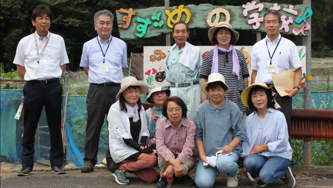 農林水産省が実施した、令和2年度鳥獣対策優良活動表彰において農村振興局長賞を受賞された「歌糸集落鳥獣被害対策研究会(会長 梅田繁美)」の女性メンバー6名及び関係機関等との意見交換を行いました。当研究会では、女性農業者等が、防護柵や緩衝帯の整備、餌場となる放任果樹の伐採等の生息環境改善のほか、鳥獣被害防止技術を学ぶための展示圃場「すずめの学校」を設置し、展示圃場で栽培した野菜を活用し無人販売所「すずめのお宿」で販売した収益の一部を地域の活動経費として還元しており、地域の活性化につながっています。