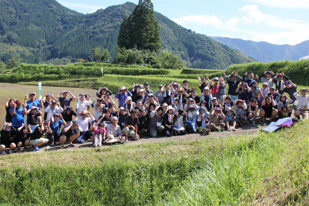 梅雨の中休みとなった当日、今年も新型コロナウイルス感染対策のため、大がかりには呼びかけを行わなかったものの、100名以上の町内外の老若男女が集合し、水田アートの田植えが盛大に行われました。子ども達は、水着を着て万全の体制で田植えに挑戦。ぬかる田に脚を取られながら、約1時間半で田植えを終了しました。今年は、新型コロナウイルス感染拡大を沈めるために、題は「バイバイキーンのバイキンマン」!秋口の稲刈りシーズンが楽しみです。
